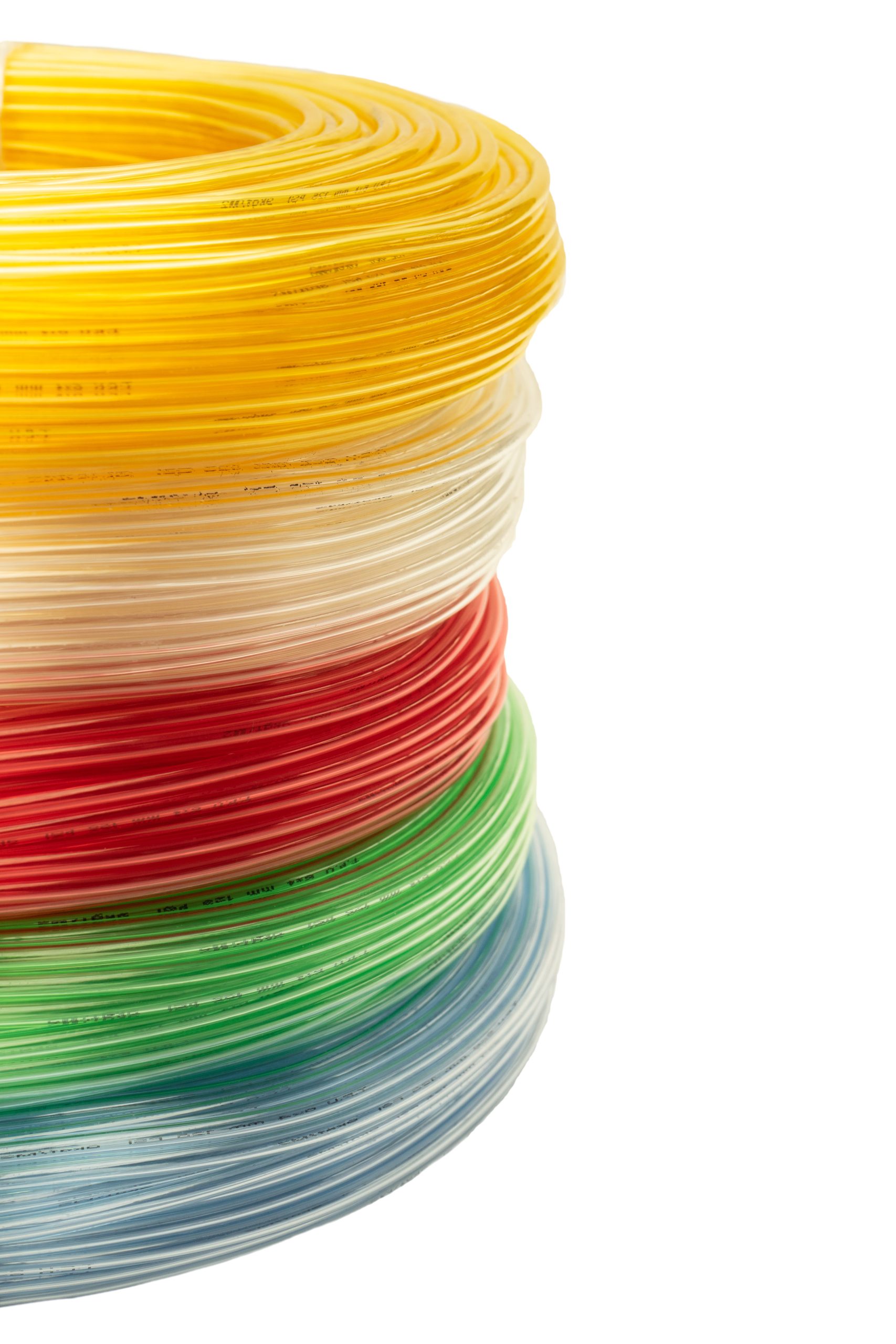 Manguera fabricada en Poliuretano transparente o colores sólidos, dureza 95 Shore A.