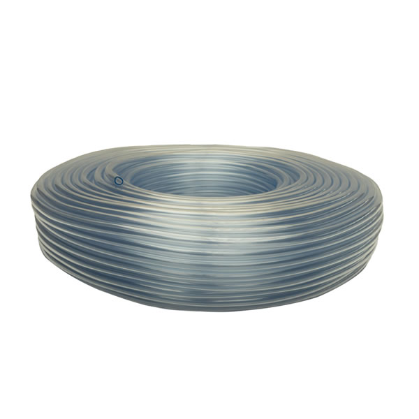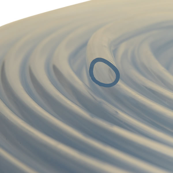 Manguera fabricada en PVC semi-rígido y pigmentada tenuemente en tono azul.